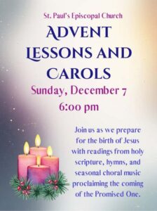 Check the Website, News From The Pews, The Epistle Newsletter or St. Paul’s App for more information. See the calendar for more events.